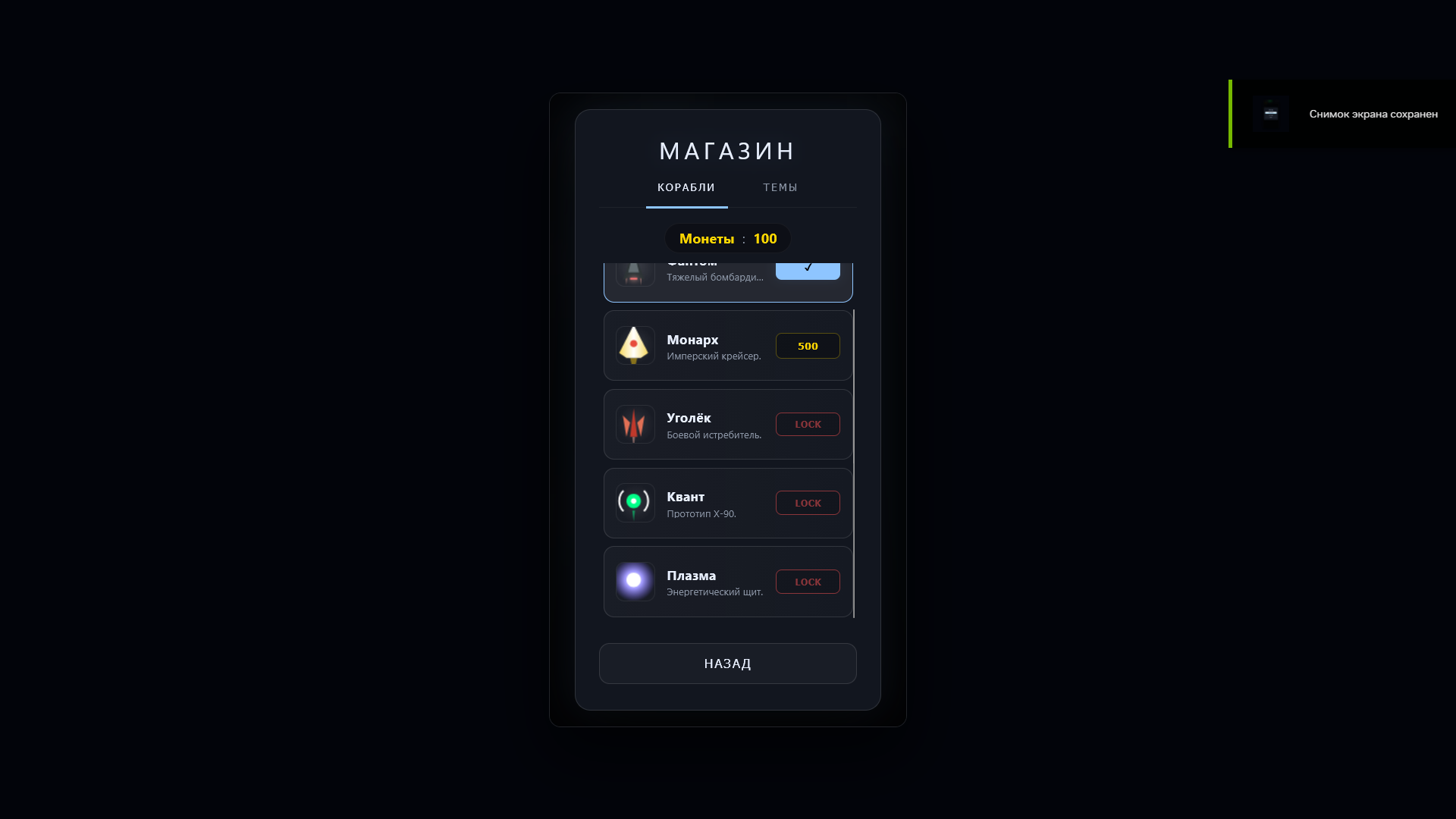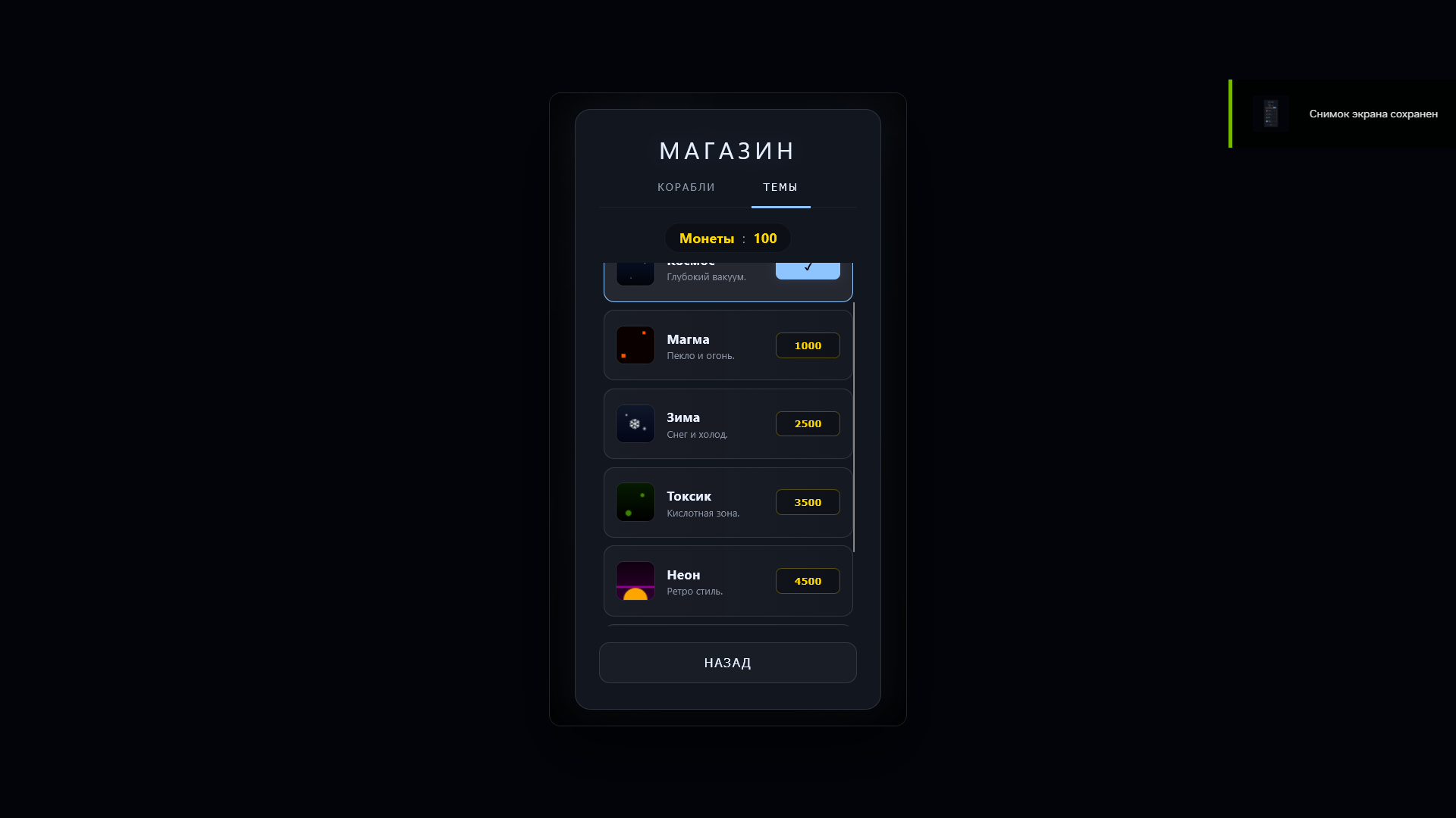 Зарабатывай очки, открывай новые корабли и стильные темы, чтобы персонализировать свой игровой опыт. Красивый космический визуал и плавная анимация делают каждую сессию увлекательной и динамичной.
